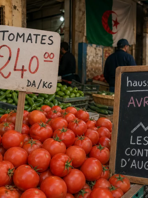 Un instituteur algérien gagne en moyenne 45 000 dinars par mois. En avril 2026, avec ce salaire, il ne peut acheter que l’équivalent de dix kilogrammes de tomates par jour travaillé. Un calcul absurde, mais réel, qui circule sur les réseaux sociaux algériens et résume mieux que n’importe quel communiqué officiel ce que vivent les familles maghrébines face aux étals du marché.
