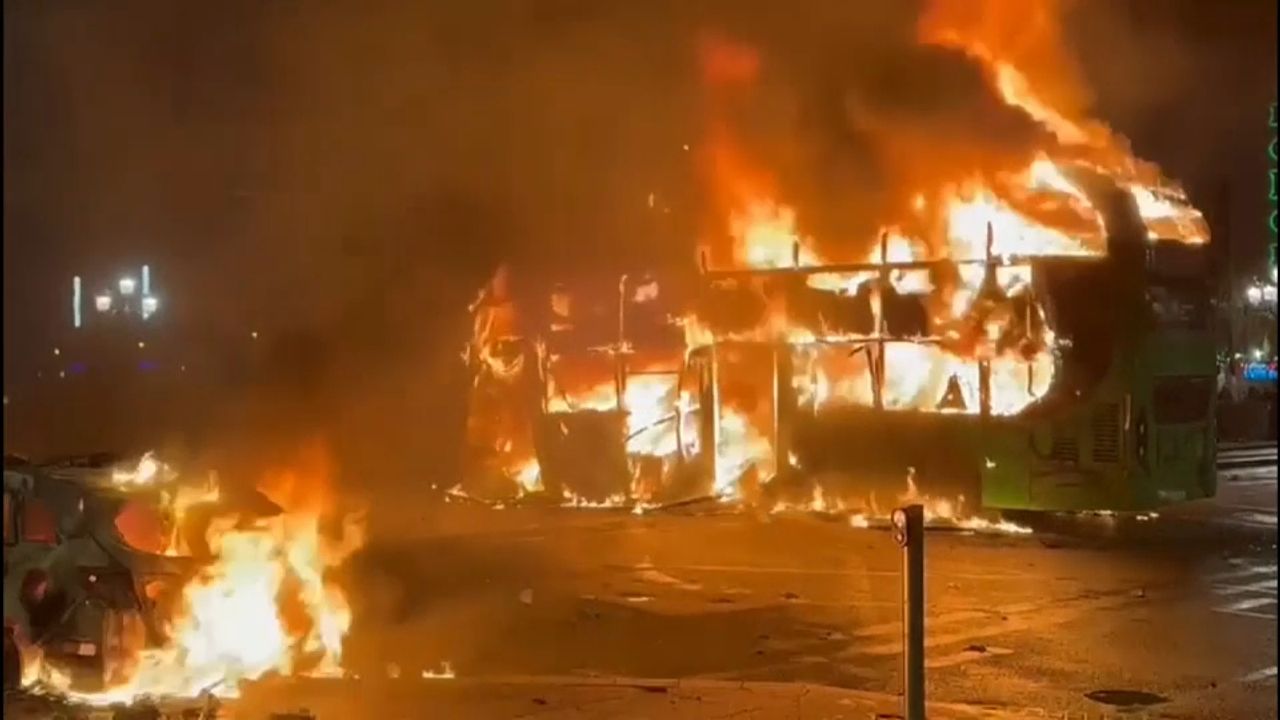 Les transports publics ont été gravement perturbés, avec des véhicules, y compris des autobus, incendiés. Le syndicat national des bus et des chemins de fer a ordonné à tous les bus de Dublin de cesser leurs services « immédiatement. » Des actes de violence, notamment des coups de pied aux boucliers des forces de l’ordre, ainsi que des pillages de magasins, ont été rapportés à la presse locale.