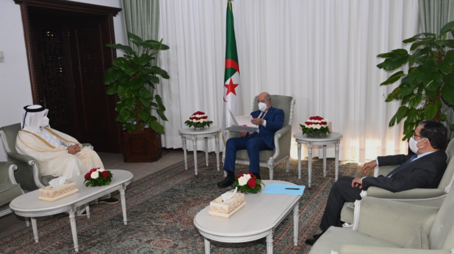 L’ambassadeur du Qatar en Algérie, Abdelaziz Ali Al-Nama, a remis un message de l’émir de l’État du Qatar, Tamim bin Hamad Al Thani, à son « frère » algérien, Abdel Majid Taboun, selon un communiqué publié sur la page officielle de la Présidence de la République sur la plateforme Facebook.